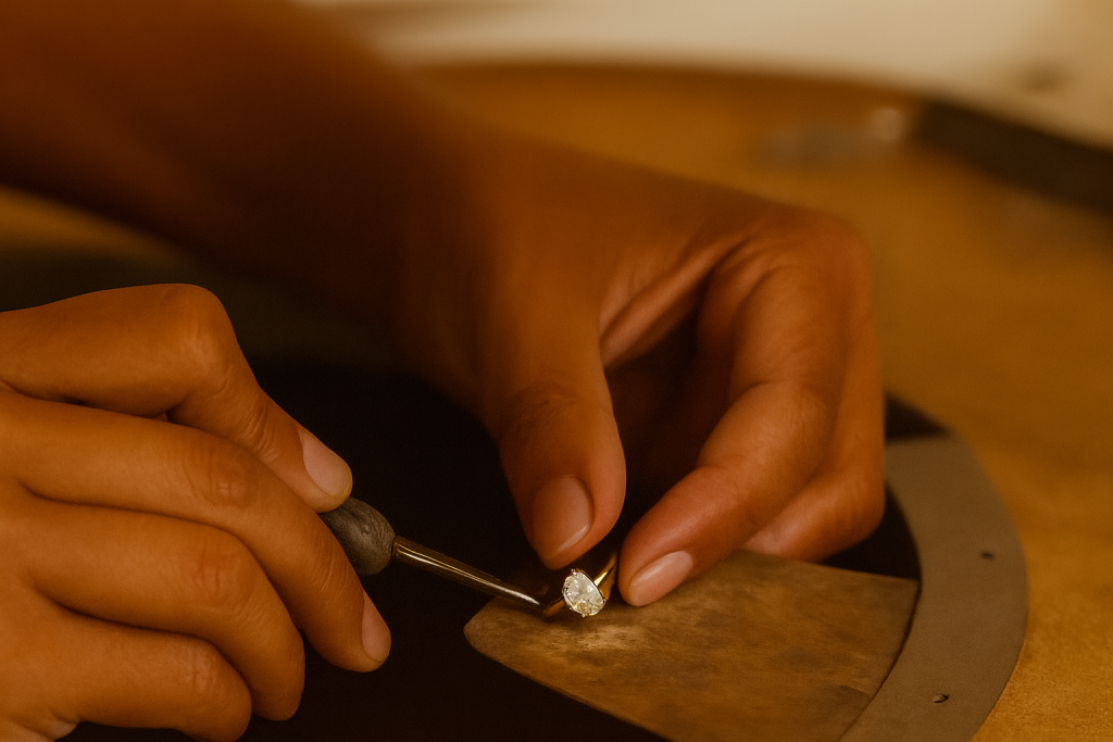 Unsere Schmuckstücke werden mit höchster Präzision und viel Liebe zum Detail in unserem hauseigenen Atelier gefertigt. Jedes Design entsteht in enger Zusammenarbeit mit erfahrenen Goldschmieden und wird unter höchsten Qualitätsstandards produziert.
