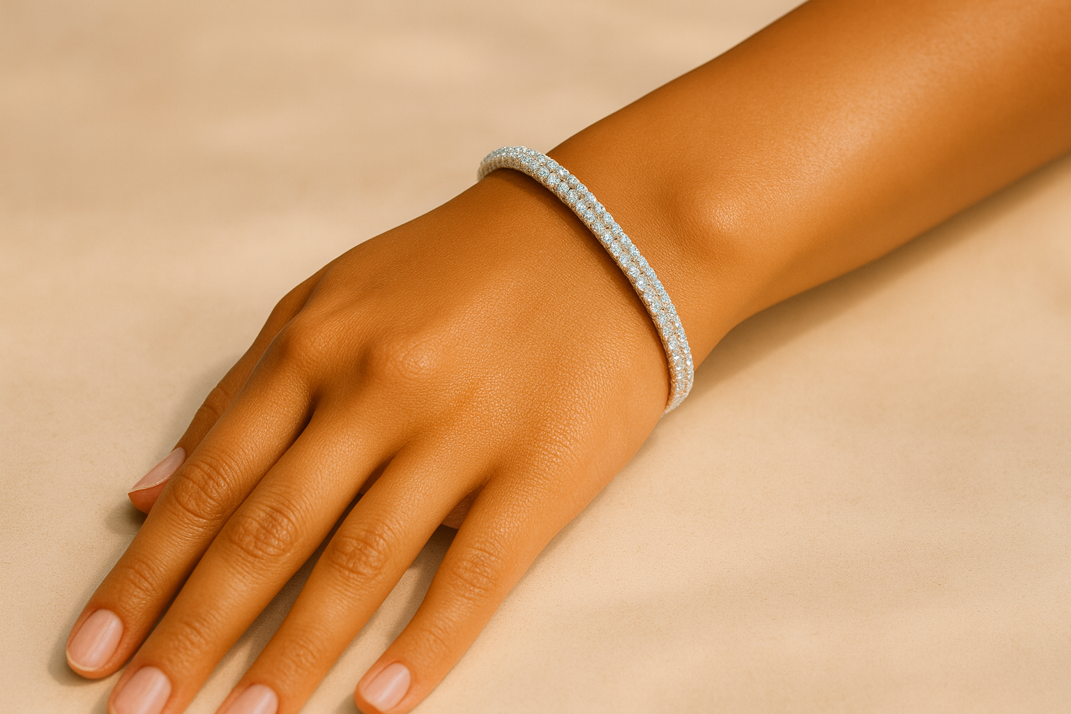 Wir verwenden ausschließlich hochwertige Edelmetalle wie 18 Karat Gold, Platin und recyceltes Silber. Unsere Edelsteine – darunter Diamanten und Saphire – werden sorgfältig ausgewählt und stammen aus verantwortungsvollen Quellen.